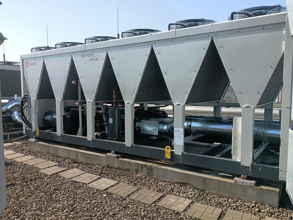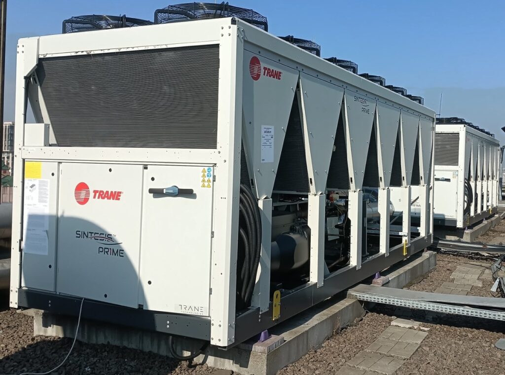 Компанія "ТРЕЙМАКС УКРАЇНА" та наші партнери System Group виконали поставку та монтаж двох холодильних машин з гвинтовими компресорами та опцією часткової рекуперації теплоти RTAF Sintesis Prime із загальною холодильною потужністю 1400 кВт.